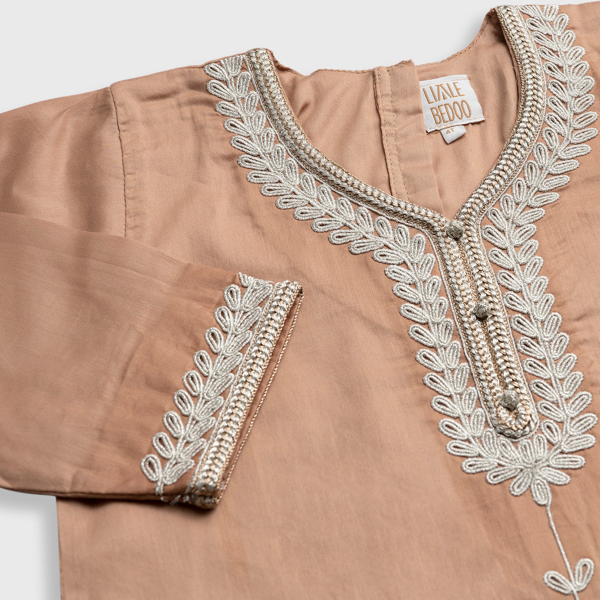 1) Little Bedoo Jalabiyas are made with high quality Modal Cotton blend fabric which is suitable for the baby’s skin.